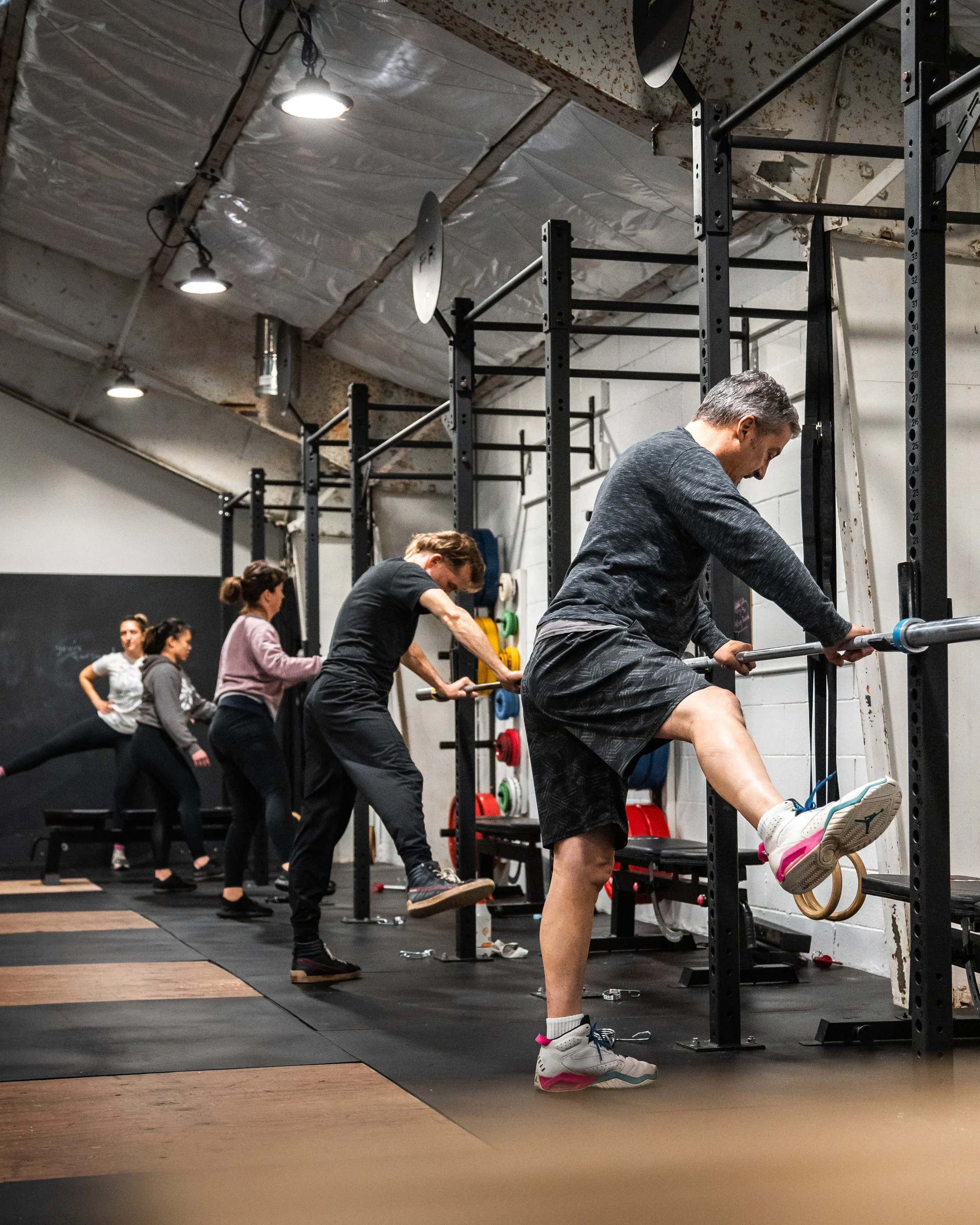 Our training is a split between strength training with a barbell and cardio/conditioning. These workouts can be done with the whole class, broken up into groups, or individual workouts depending on our goals of that training cycle.